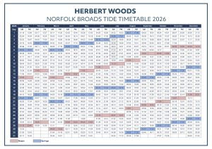 Our 2026 Tide Timetable shows the low water times at Great Yarmouth Yacht Station and how to calculate low water at other locations around the Broads.