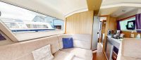 Adventuring Light is a popular Elite cruiser featuring an open-plan saloon and galley. The split-sliding canopy offers flexibility to open one side or both. With a double bedroom at the rear and additional sleeping space at the front via convertible seating, it’s perfect for a couple or small family. There’s also outdoor seating, ideal for sunbathing. The cruiser comes with a separate bathroom equipped with a toilet, shower, and sink.
