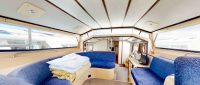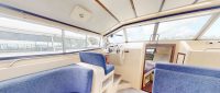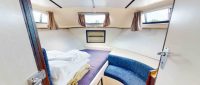 Amber Light is part of our Connoisseur range, offering three double cabins, each with its own bathroom. The raised central steering area and fully sliding canopy create a bright and spacious atmosphere, with the canopy operated by a winch. The kitchen is fully equipped with an undercounter fridge with a small freezer and gas cooker. The saloon seating can be converted into a double bed for extra sleeping space. Entry is made easier with side deck access and steps into the galley.