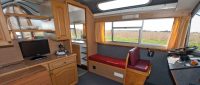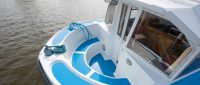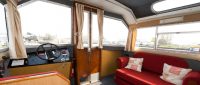 Evesham Light is a comfortable single-level cruiser with a sliding sunroof and a door to the front seating well. The front well has moulded seating, making it ideal for sunbathing or fishing. The saloon seating converts into an additional double bed, while the rear cabin includes one double bed, one single bed, and a wash basin. The family bathroom has a shower and toilet.