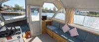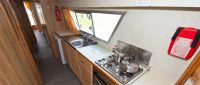 Folkestone Light comes with a saloon that has a split-sliding canopy, allowing each side to open separately, and a door to the front well. The saloon seating can be converted into extra double and single beds. Mid-ship, there’s a double cabin with an adjoining bathroom, and a twin cabin with a bathroom opposite. The rear dining area features seating that can be converted into another double bed, with a separate family bathroom providing a toilet and shower.