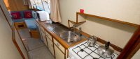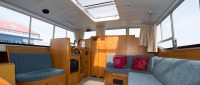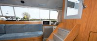 Glittering Light offers an upper deck with an external steering position and additional seating to enjoy the views. The saloon has a second steering position, and the seating includes a quarter berth suitable for a child. The saloon seating can also be converted into an additional double bed. The forward cabin has a double bed with ensuite, and the rear cabin includes both double and single beds with ensuite.