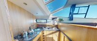 Olympic Light is a modern, high-specification cruiser with dual steering positions. The boat features an external upper deck with a raised steering position and seating to enjoy spectacular views. The saloon is light and spacious, with a raised steering position offering enhanced visibility. The saloon seating can be converted into an additional double bed if needed. The rear cabin is ensuite with a double bed, and an additional forward cabin includes a double bed and a quarter berth suitable for a child. A separate family bathroom with a toilet and shower is also provided.