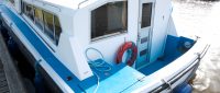 Bridge Clearance: 7 ft 3 ins. Will pass under Ludham, Wayford and Wroxham bridges subject to weather and tide conditions with the canopy and windscreen lowered. Will only pass under Beccles Old and Potter Heigham bridges at extreme low tide (Bridge pilot service must be used when passing under Wroxham & Potter Heigham bridges).