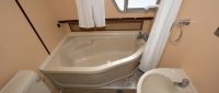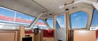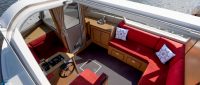 Summer Light features an open-plan saloon and galley with a light and airy feel. The saloon includes a split-sliding canopy that allows each side to open separately. The boat also features a quarter berth suitable for a child, located forward of the helm position. The rear cabin includes a double bed that can be accessed from both sides, along with an additional single bed. The bathroom includes a full-size bath with a shower over it.