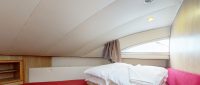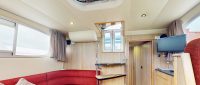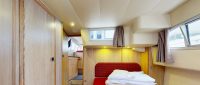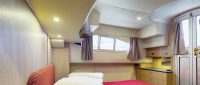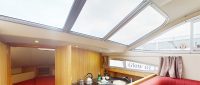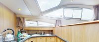 Supreme Light offers an external deck with a raised steering position and seating to enjoy spectacular views. Inside, the spacious raised saloon has a second steering position for enhanced visibility. The saloon seating can be converted into an additional double bed if needed. The boat includes a forward cabin with a double bed and a quarter berth suitable for a child. There’s also a separate family bathroom with a toilet and shower, and a spacious ensuite master cabin.