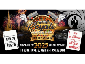 Ring in 2026 with style at Rooftop Gardens’ glamorous Casino Royale night on 31st December, with live DJs, saxophone sets and a rooftop dance floor under the stars.